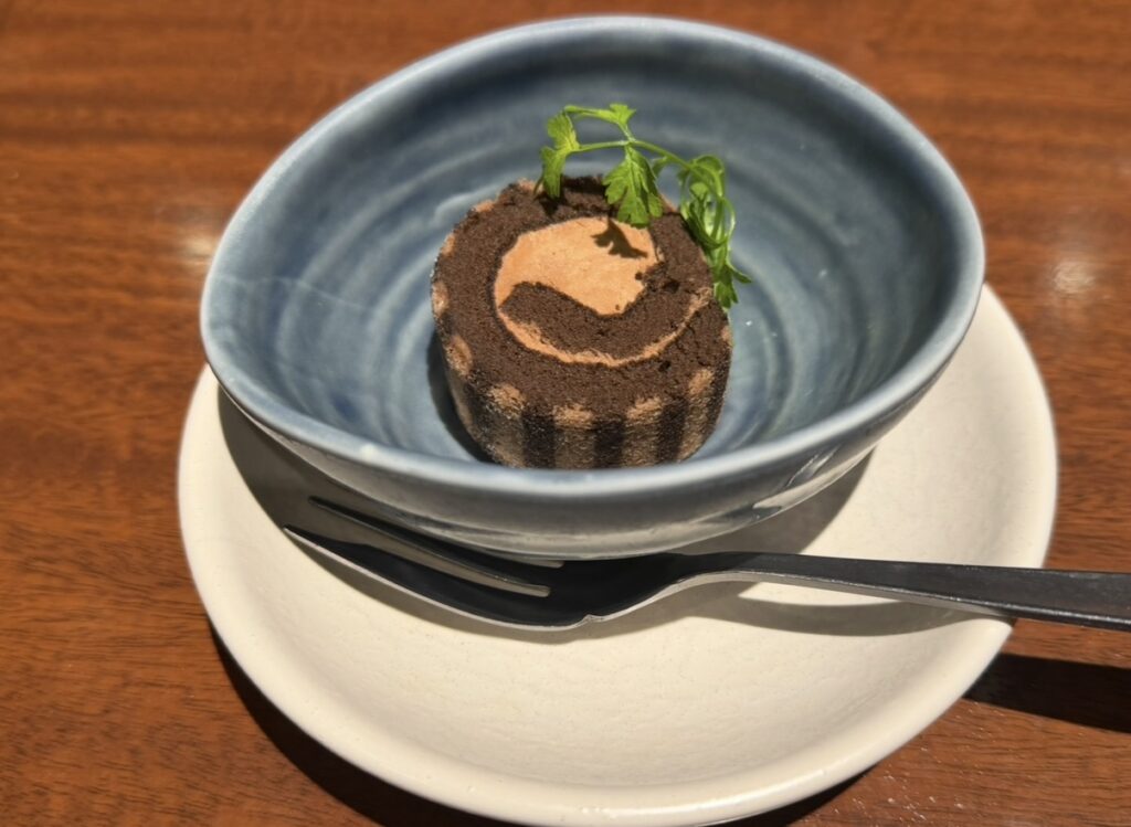 これは私が知ってる限りでは、このコースにはいつもチョコロールケーキが出てきます。