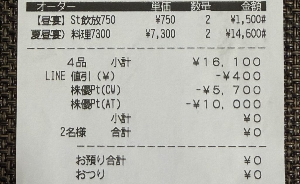最終的には 株主優待だけで全額お支払い0円という最高の優待ディナーに…!