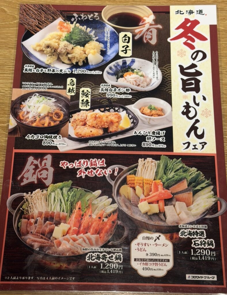 今回は、コロワイドグループが運営する居酒屋チェーン「北の味紀行と地酒 北海道」に行ってきました。