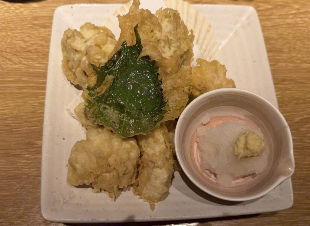 衣はサクッと軽く、中の白子はとろっと濃厚。ポン酢とはまた違った味わいで、白子の美味しさをしっかり楽しめます。