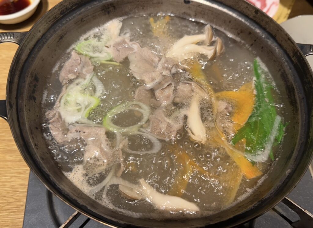 さっと火を通すだけでお肉がやわらかくなり、出汁の旨みと野菜の甘みが合わさって、あっさりと楽しめました。