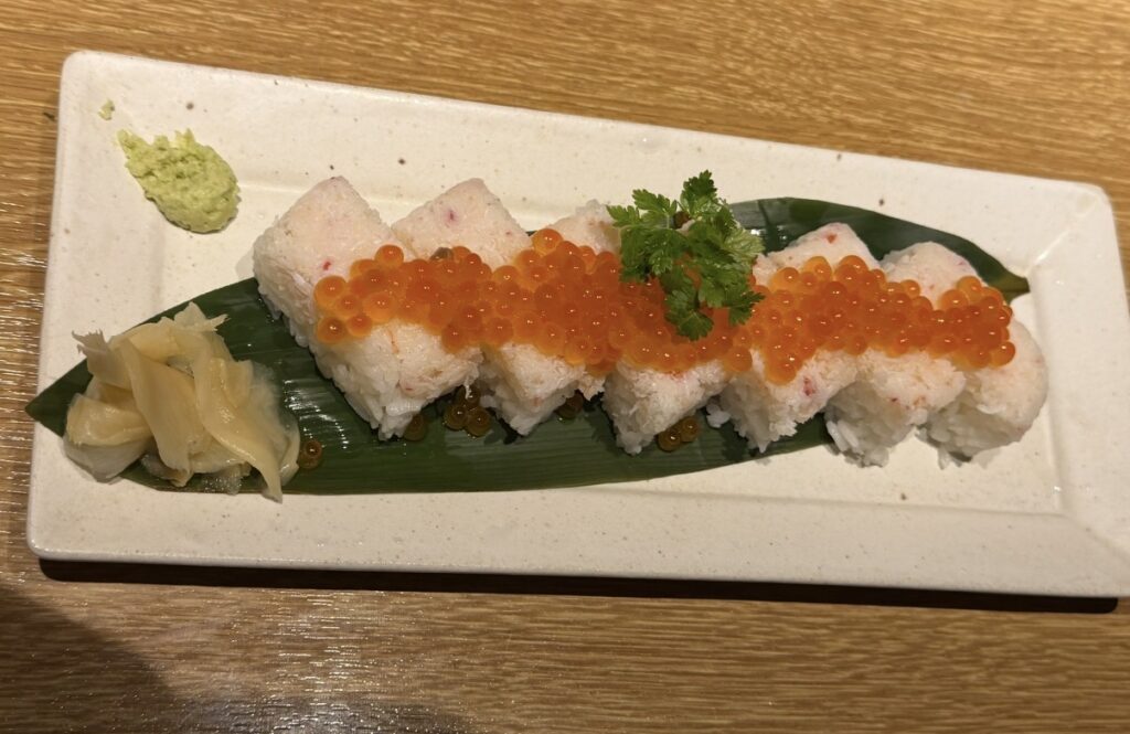 そして〆に注文したのは、お気に入りの「かにといくらの箱寿司」です。