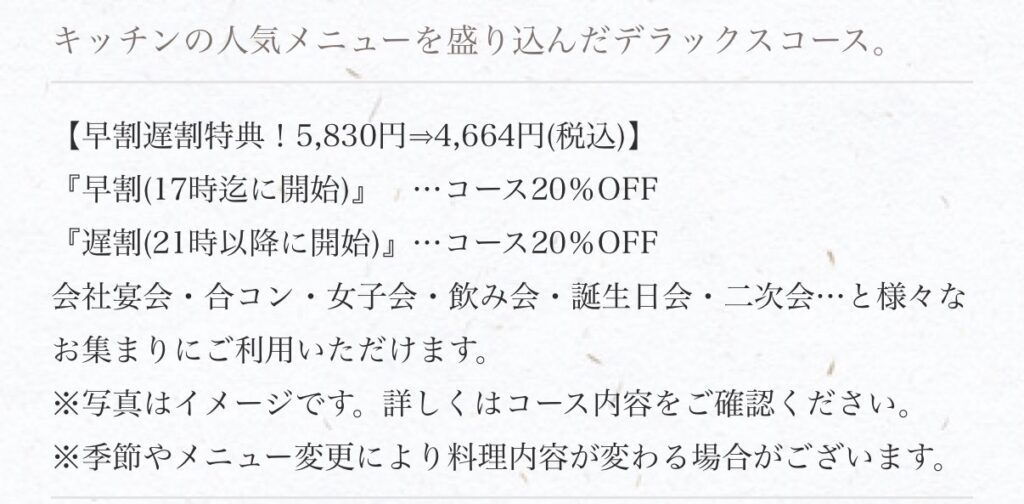 飲み放題付きデラックスコースの内容を写真付きで紹介