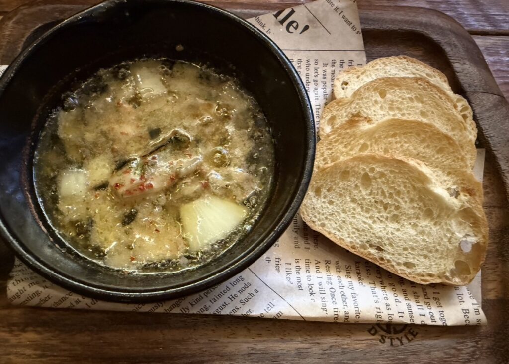 つづいての魚料理は、牡蠣のバターアヒージョ。