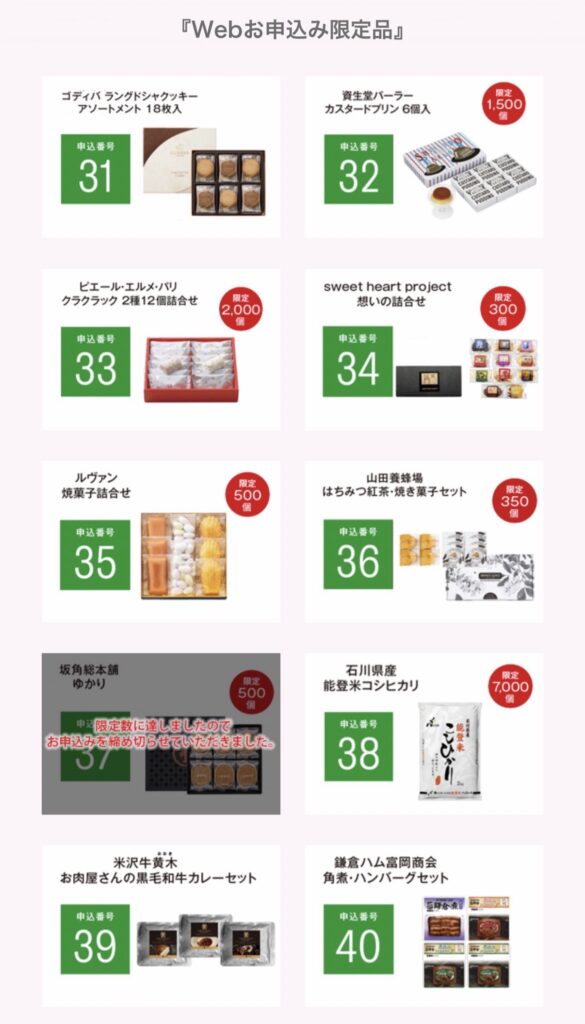 そのうち1つだけはすでに申し込み終了となっていましたが、それ以外の限定商品はまだ選べる状態でした。