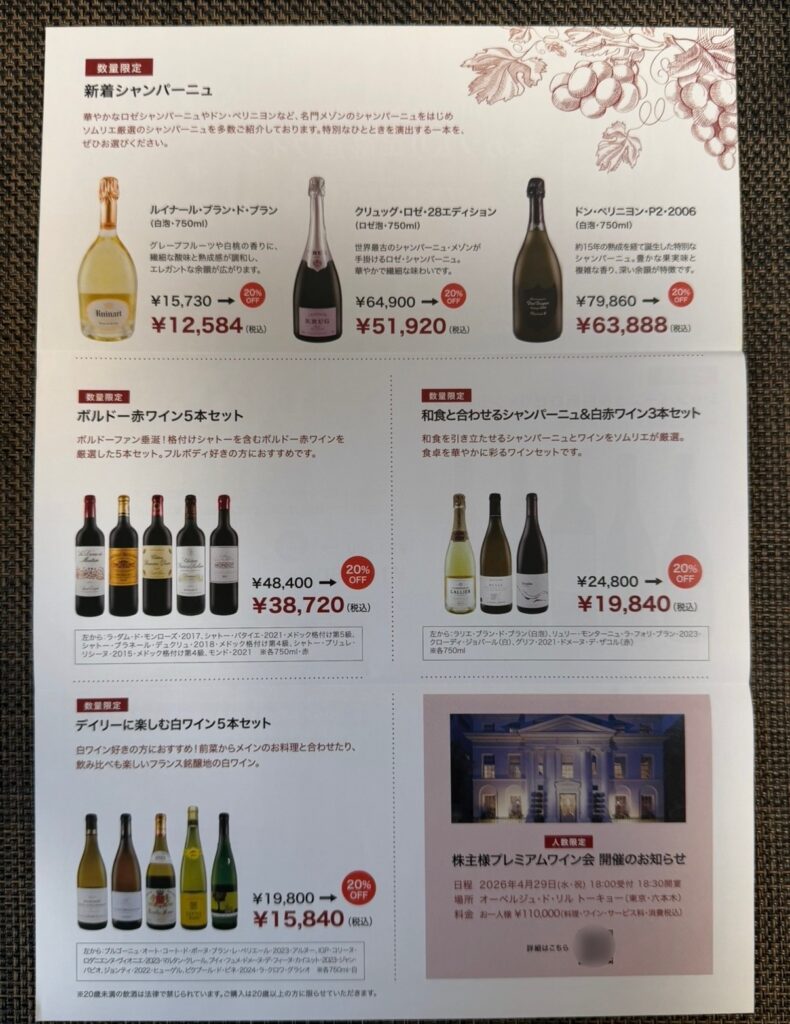 ソムリエ厳選のワイン、株主向けフェアの案内など、