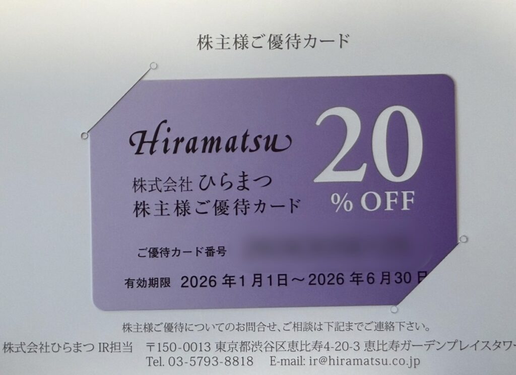 そんな投資スタイルができるのが、ひらまつの株主優待。