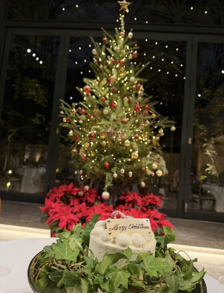 きらきら輝くクリスマスツリーを間近に眺めながら、美味しいお料理と特別なデザートを楽しめる時間は、本当に贅沢で幸せなひとときでした。