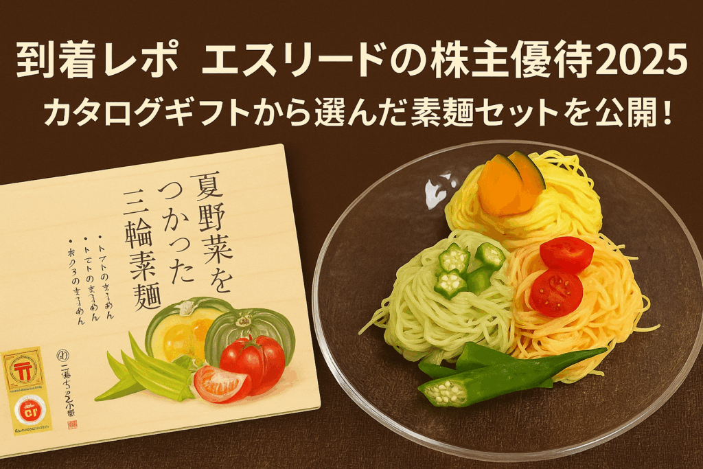 エスリード(証券コード8877)から、株主優待が届きました。 以前ブログでエスリード(8877)の株主優待案内をご紹介しましたが、今回は「夏野菜を使った三輪素麺」が、到着したのでご紹介します。 👉優待案内記事については、コチラをご覧...