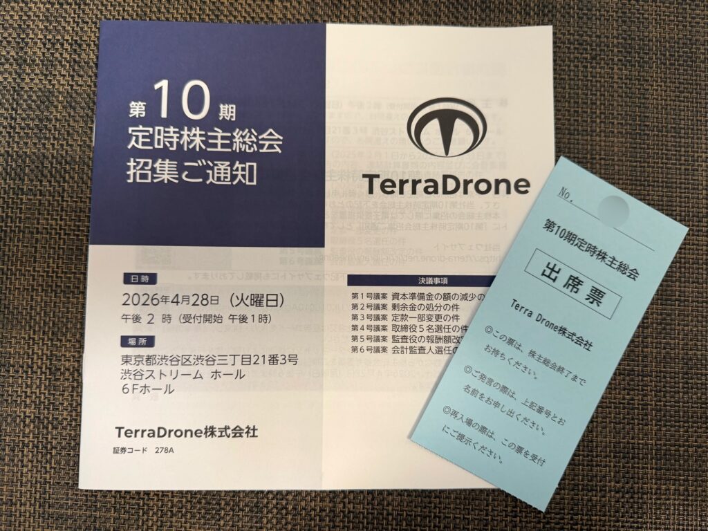 Terra Drone(証券コード278A)の株主総会に実際に参加してきました。